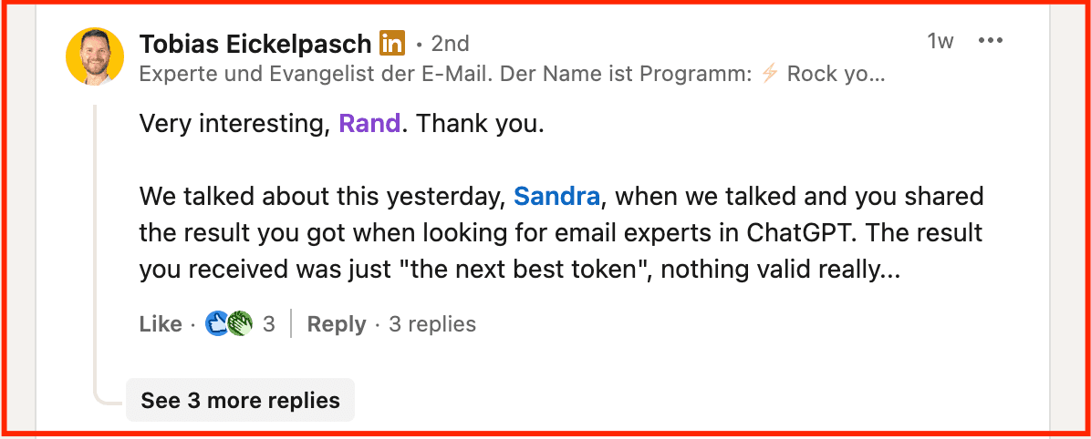 Your name being mentioned when the topic comes up: When others reference your perspective elsewhere, inside comments or in their own posts, you start getting associated with the idea itself, not just the content.