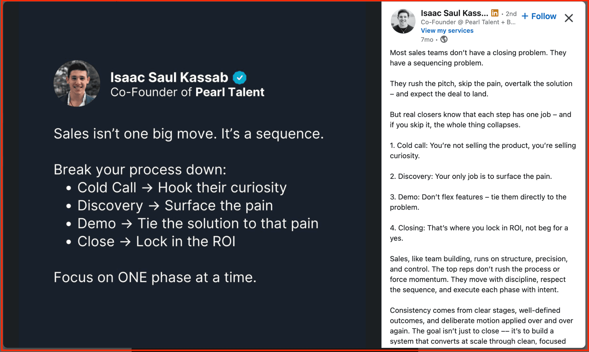 Example: “Everyone insists on a 10-step sales process. That rigidity is exactly why most teams struggle to close deals quickly.”