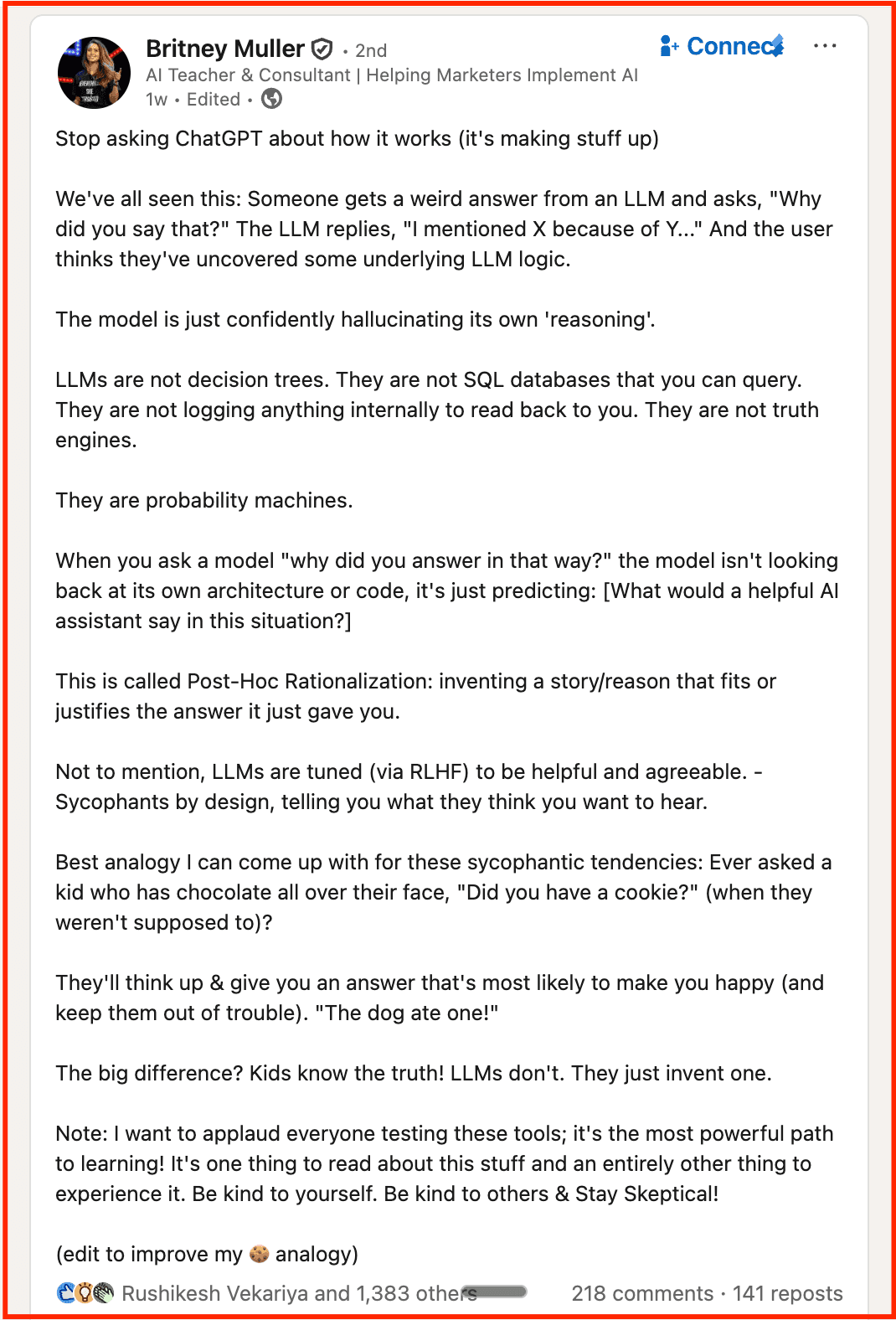 “Stop asking ChatGPT about how it works (it's making stuff up).”