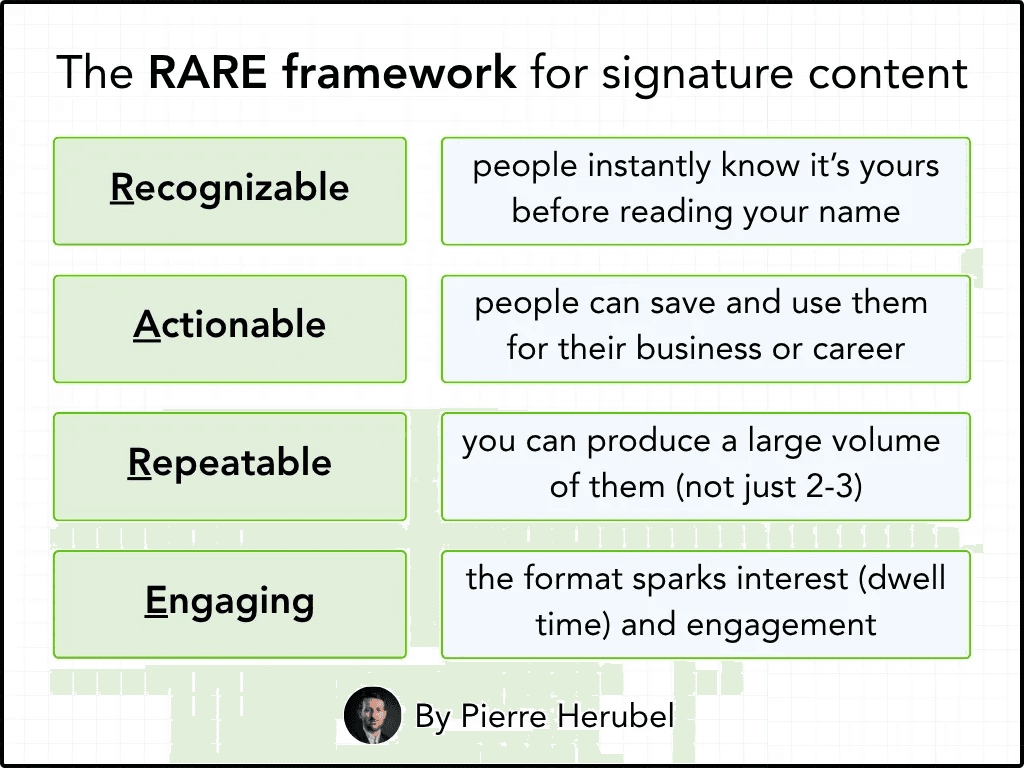 That’s not laziness, but a strategy. Having signature content turns your content from good to unforgettable. From “can be found anywhere” to “I need to follow this person.”