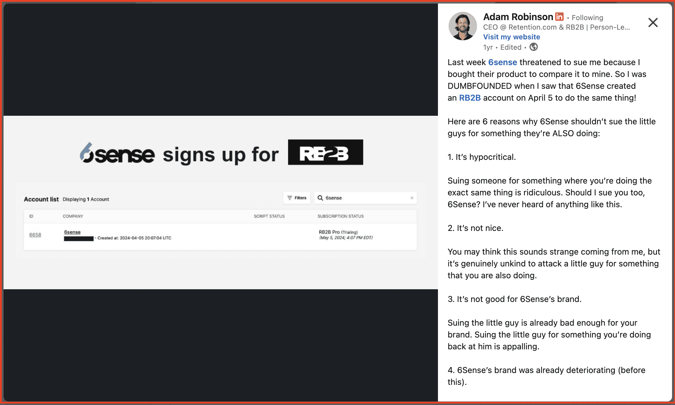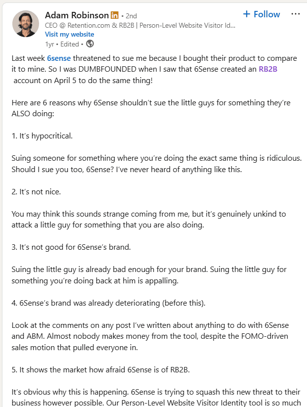 Adam took a different approach. He wasn’t afraid to challenge bigger players or call out ideas he believed were fundamentally flawed. For instance, the 6Sense beef with Adam fueled his initial growth.
