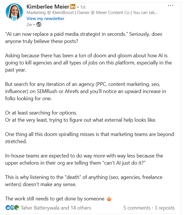 LinkedIn thought leadership enables founders to build trust at scale, especially important for early-stage founders who usually lack social proof and brand trust at the beginning of their journey.