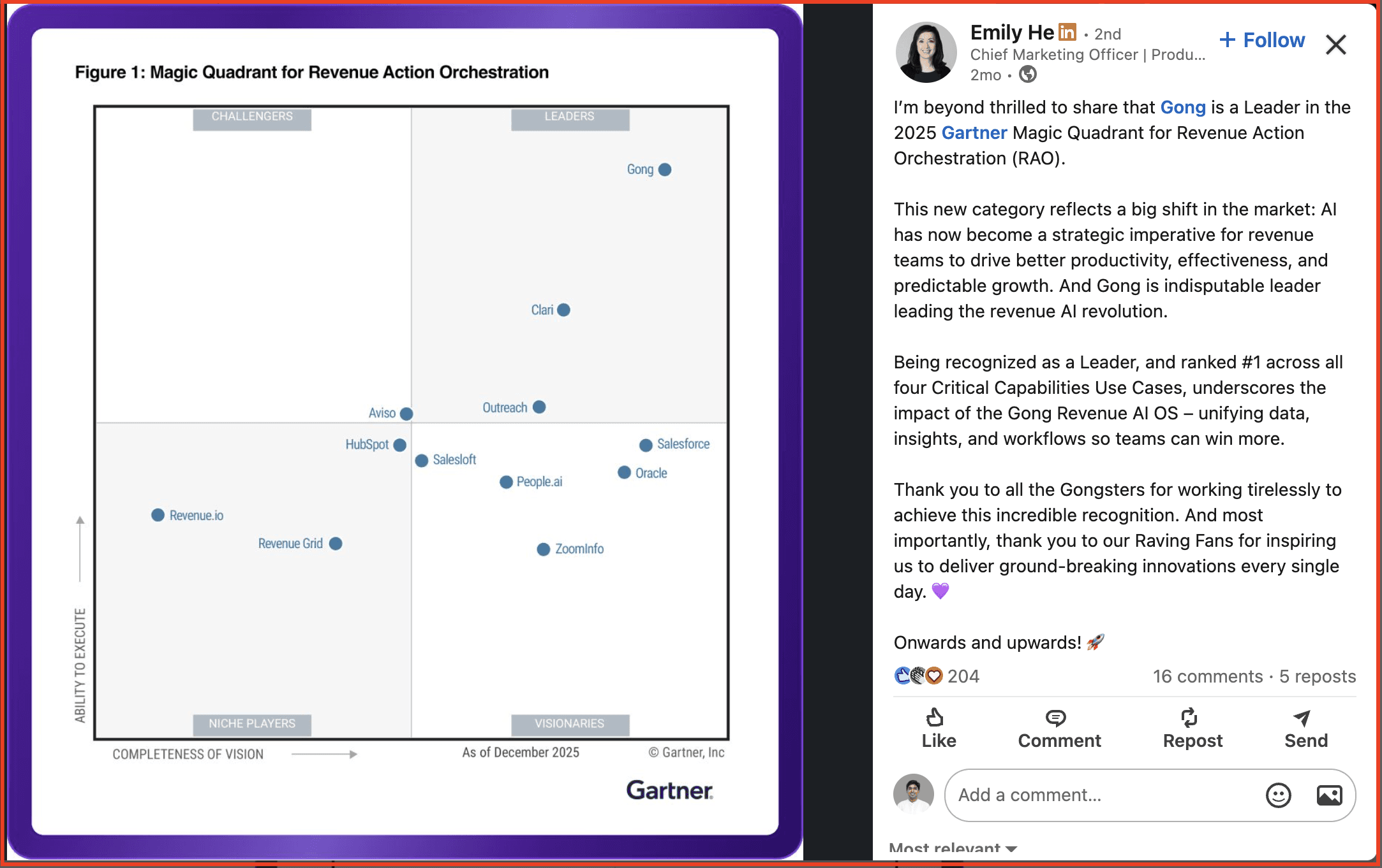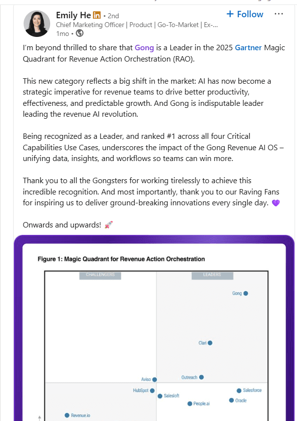 Gong used LinkedIn employee advocacy to grow 8x in less than two years through multi-layered thought leadership.