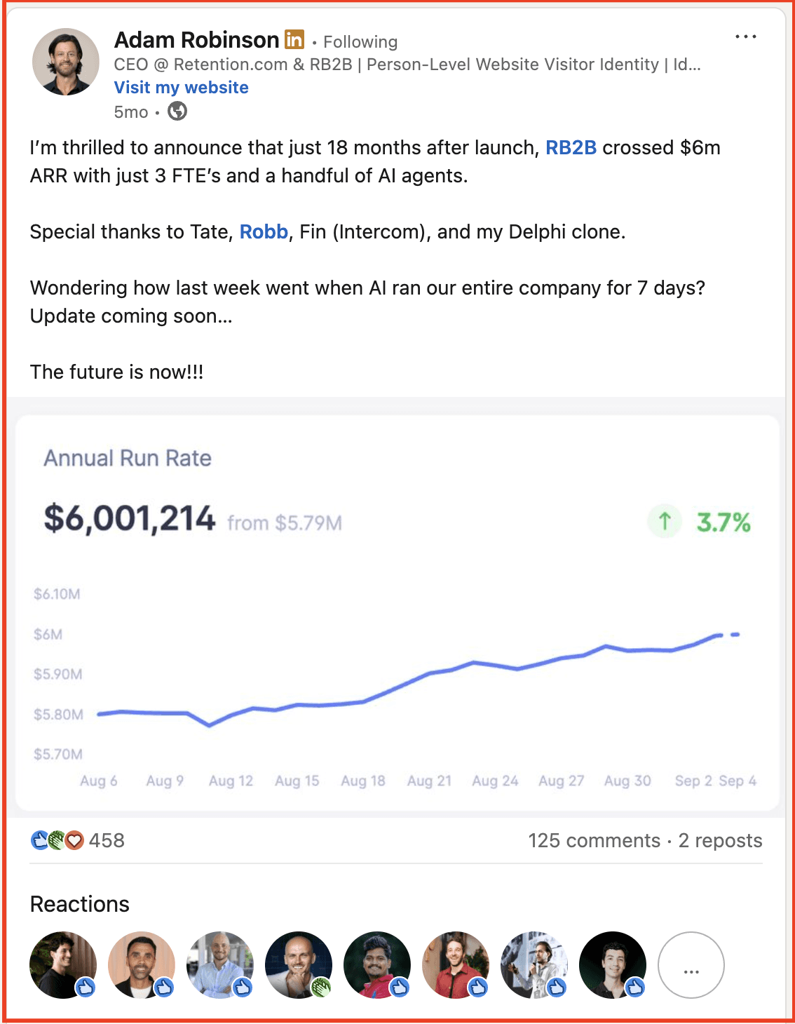 Adam Robinson is a prime example of founder-led advocacy on LinkedIn. He grew from $0 to $3M ARR in 200 days using LinkedIn.