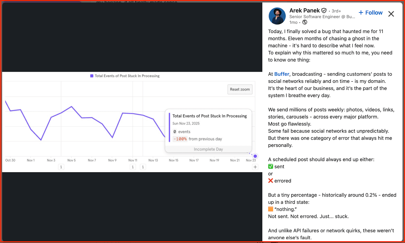 For instance, when Arek, Software Engineer at Buffer, posts something their team created, people listen because;