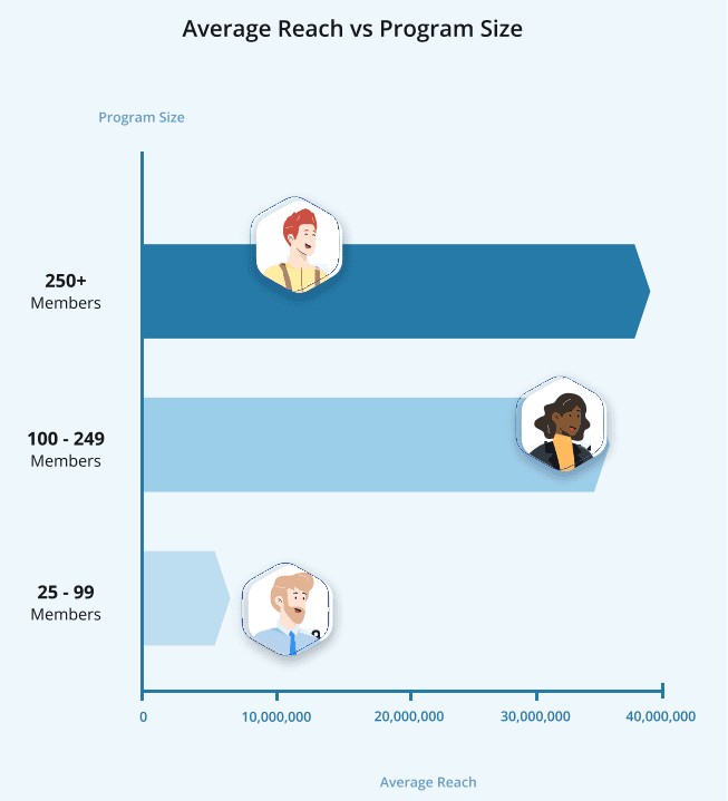 Employee advocacy programs can generate an average annual reach of nearly 27 million for brands. Compare that to brand-owned social media, where organic reach typically sits between 2%–15% of total followers, depending on the platform and content type.