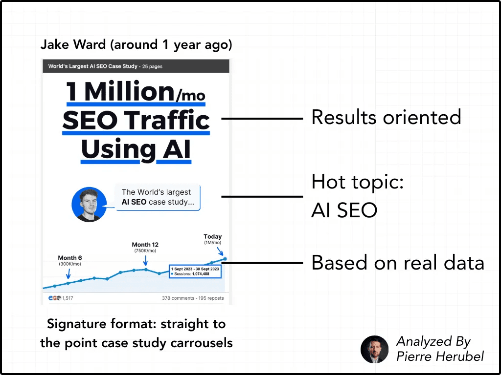 Analyse big creators–When you analyze creators experiencing hypergrowth, you’ll often notice they have a signature format, that is, their cover slide is: