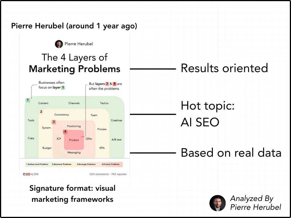 Creator uniqueness comes from two things: the unique insights you share and the quality of the content you actually create. You need good ideas, good copy and a signature format to do well in LinkedIn carousels.