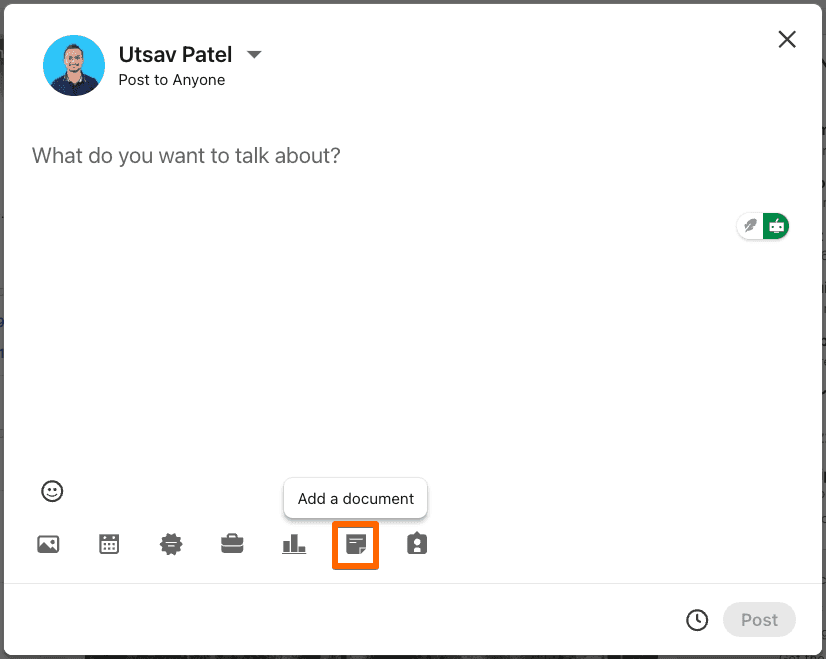 Check that you're on the desktop version of LinkedIn for the best posting experience