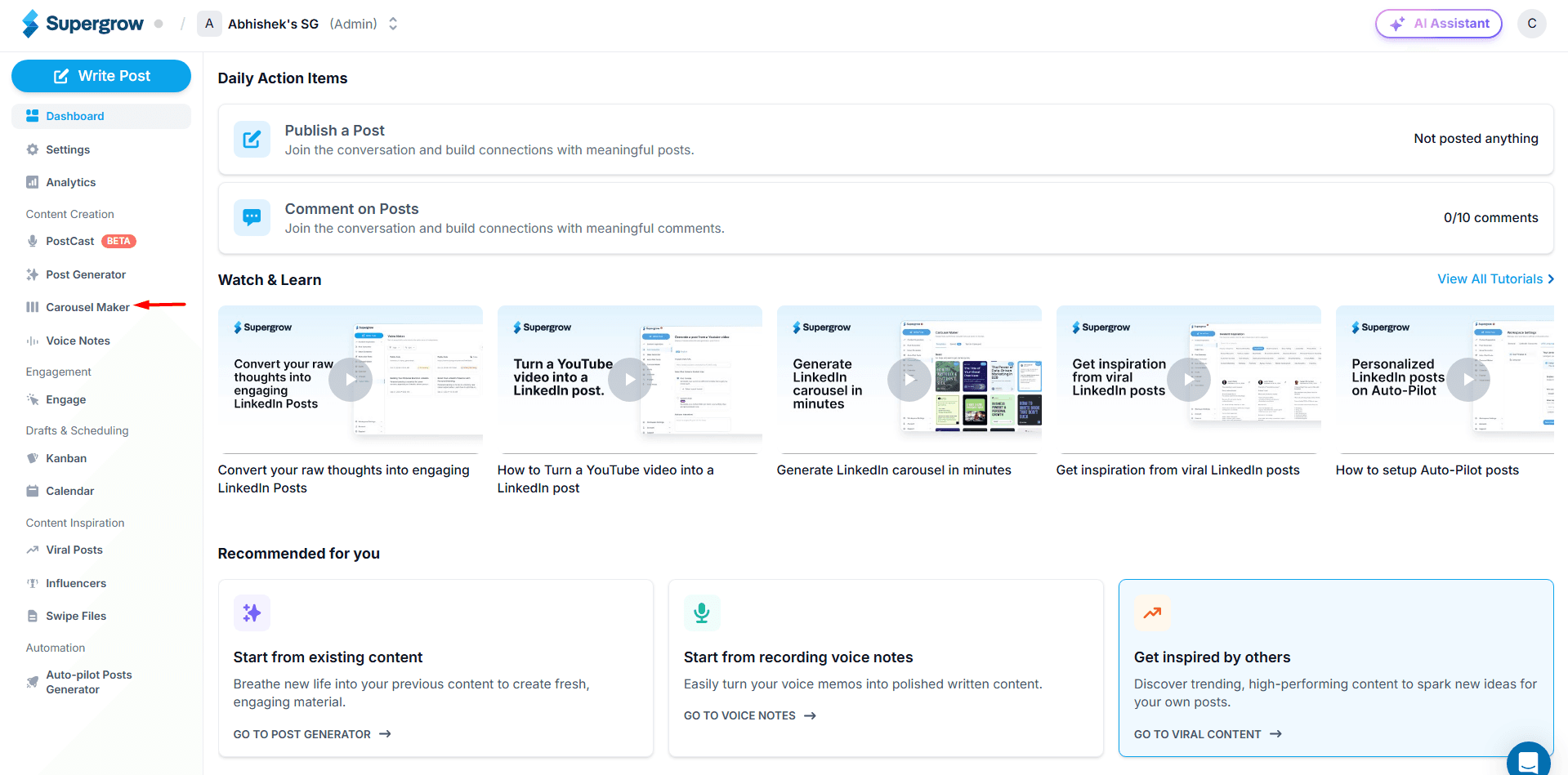 That’s exactly where Supergrow comes in—giving you a single LinkedIn-first workflow to create, design, publish, and scale carousel posts without switching tools or breaking momentum.