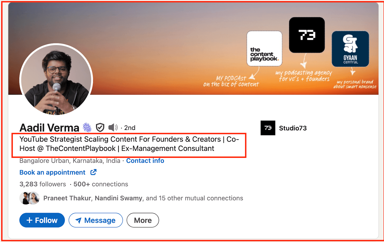 If your headline says “Growing health-tech brands via content,” your posts should reflect that through actionable insights, growth frameworks, and personal experiences.