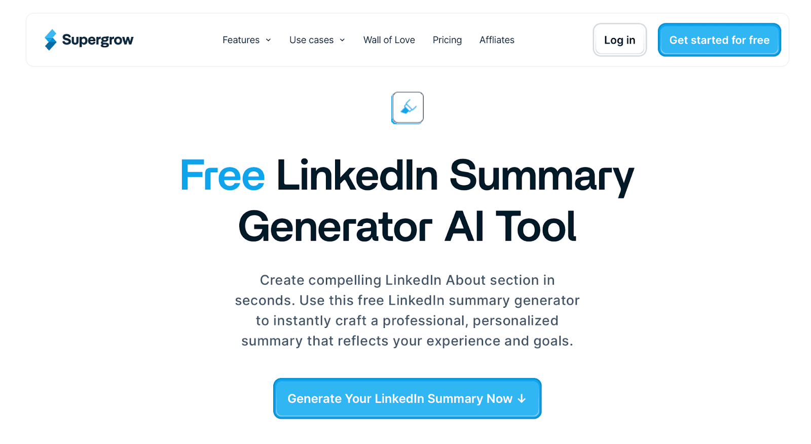 If you prefer a short summary but don’t know what to include, Supergrow’s free AI summary generator is the only tool you need. All you have to do is-