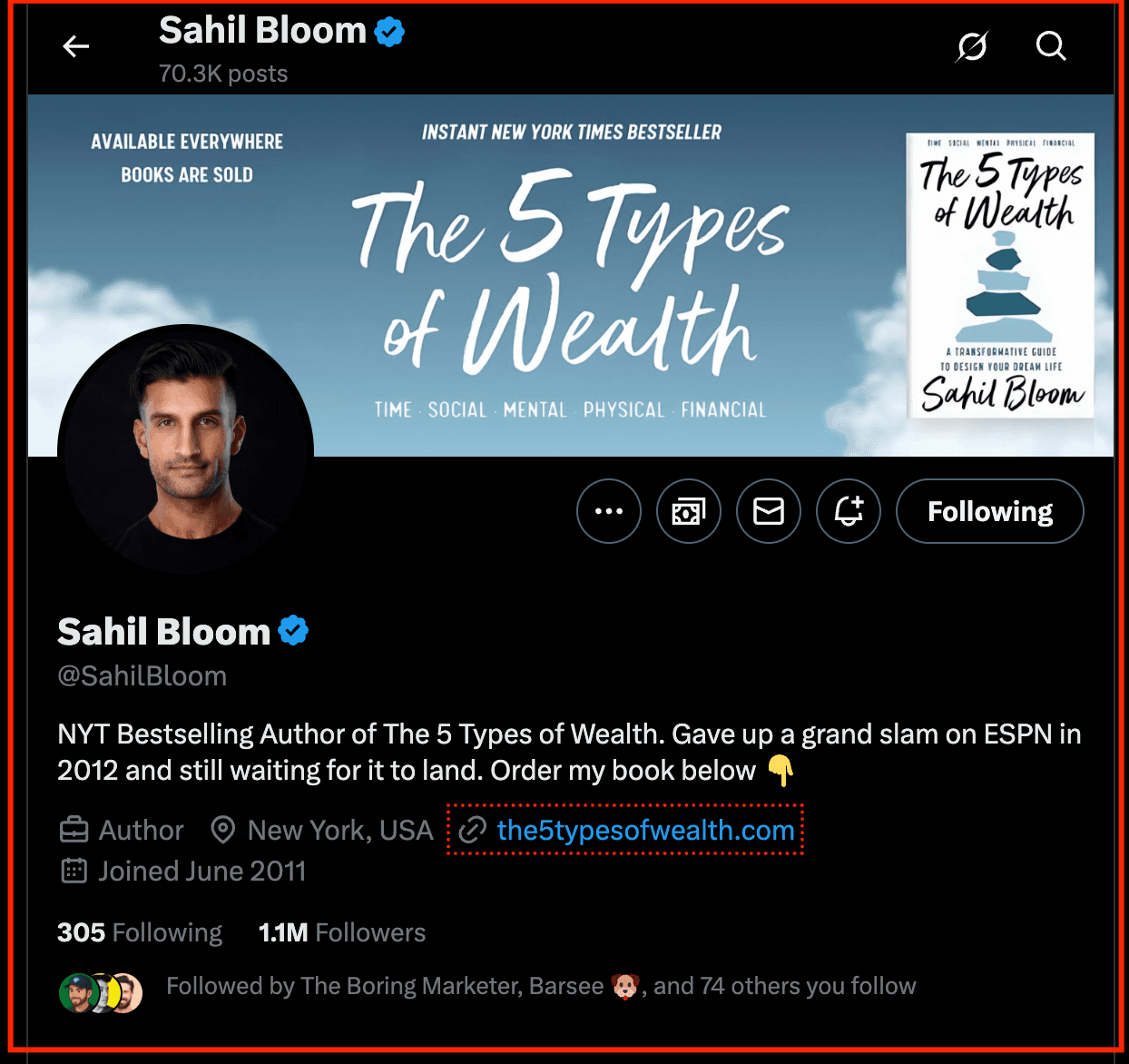 Sahil Bloom is an investor, entrepreneur, and writer, but his personal brand was born on Twitter. In 2020, while working in private equity, he began writing long-form threads breaking down complex ideas in business, finance, and life.