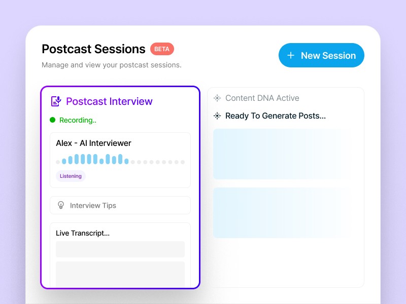 Each interview generates 3-5 distinct posts from the same conversation.